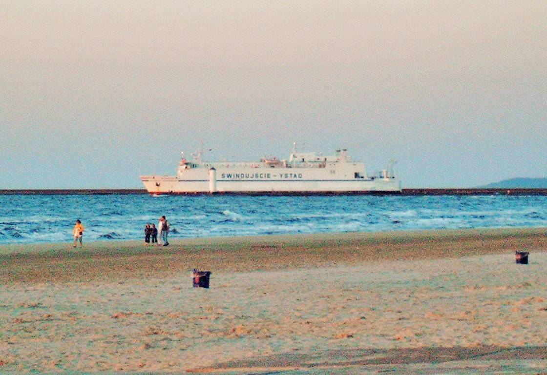 Jeżeli przyjdziemy na plażę przed 11:00, powinniśmy zobaczyć przypływającego z Trelleborga MF Wolin. Jest to najdłuższy polski prom. Wyrusza on zazwyczaj z powrotem do Trelleborga przed 17:00, więc szansa na zobaczenie go, będąc na plaży, jest bardzo duża.