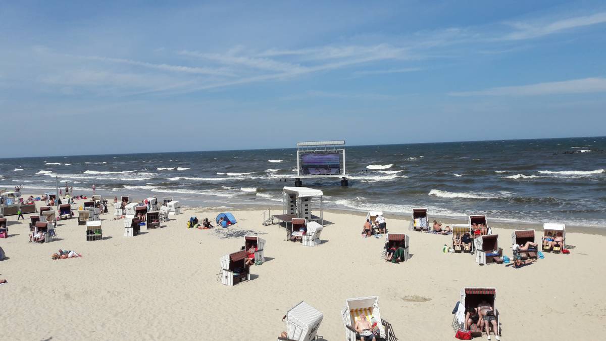 Jeżeli ktoś chce w wyjątkowy sposób obejrzeć np. mecz Bayernu to niech podejdzie do Herringsdorf. Na plaży koło molo zamontowano telebim, na którym lecą m.in. mecze bundesligi. Obok są stoiska z piwem i już wiesz, że dobrze trafiłeś :) Podobno podczas mistrzostw europy było tam stanowisko telewizyjne z komentatorami. Komentował sam Oliver Kahn. Za kosze trzeba zapłacić ale zwykła miejscówka na piachu za free :)