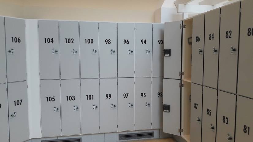 Dostaliśmy taki kluczyk - magnez do szafek z numerem. Obok są przebieralnie.