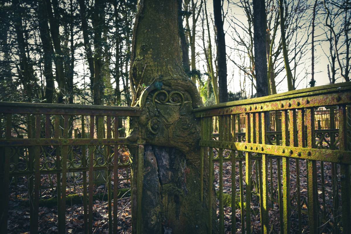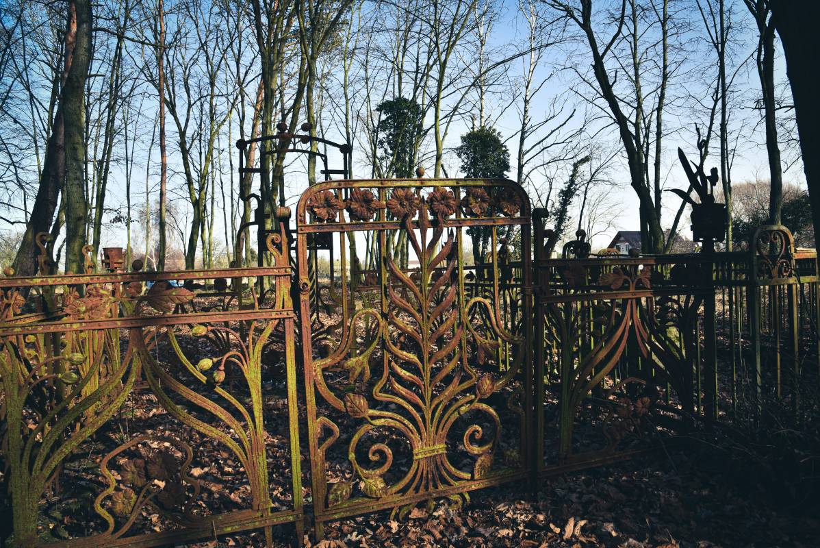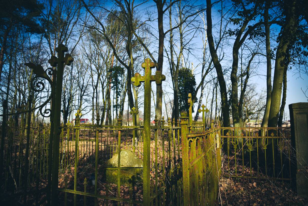 Niespodziewanie trafiliśmy na stary ewangelicki cmentarz dawnych mieszkańców miejscowości. Cmentarz jest bardzo zaniedbany, ale do dziś można podziwiać kunsztowne żeliwne ornamenty.