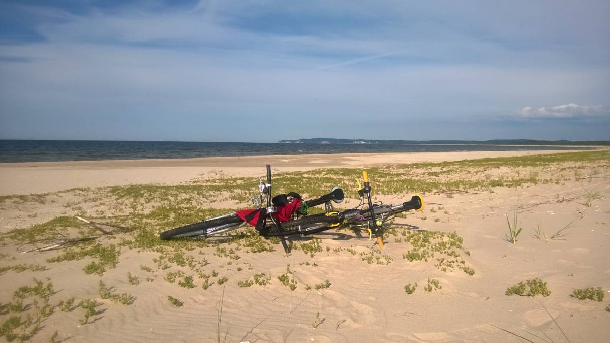Tą ścieżką, która raz bywa ,,ładniejsza", innym razem mniej, jedziemy do samego wejście na plażę. Dla zmotoryzowanych wybudowany jest parking, który wygląda na bezpłatny.