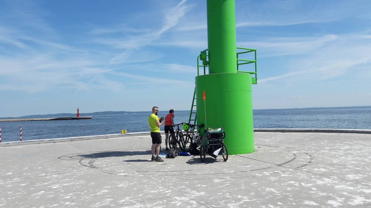 Na główce zielona latarnia. Zielona, bo tory wodne oznakowuje się kolorami zielonym i czerwonym - czerwony z lewej, zielony z prawej - patrząc od strony morza.