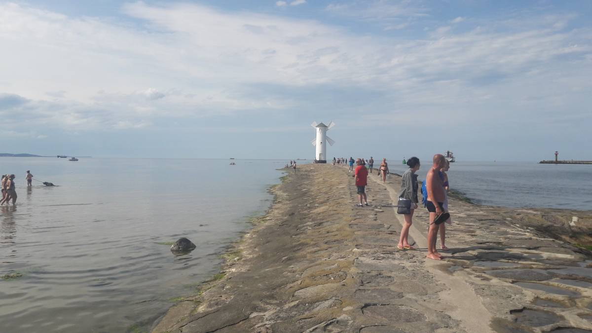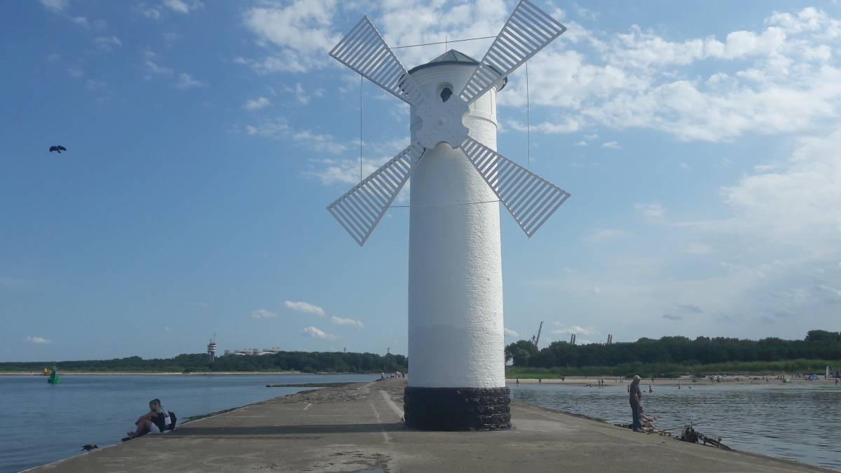 Wiatrak znajduje się na końcu falochronu, po którym można chodzić. Z jednej strony kąpiące się dzieci, z drugiej przepływające statki. Malowniczo, romantycznie, wspaniale.